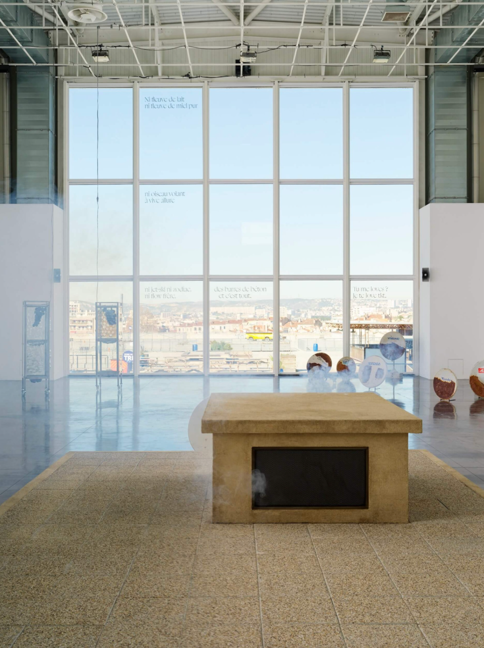 Broadcast throughout the exhibition on two visible speakers, made for public spaces, the sound installation The Site of Sound was recorded on cassette in Marseille in 2023, during the successive riots following the death of Nahel Merzouk.